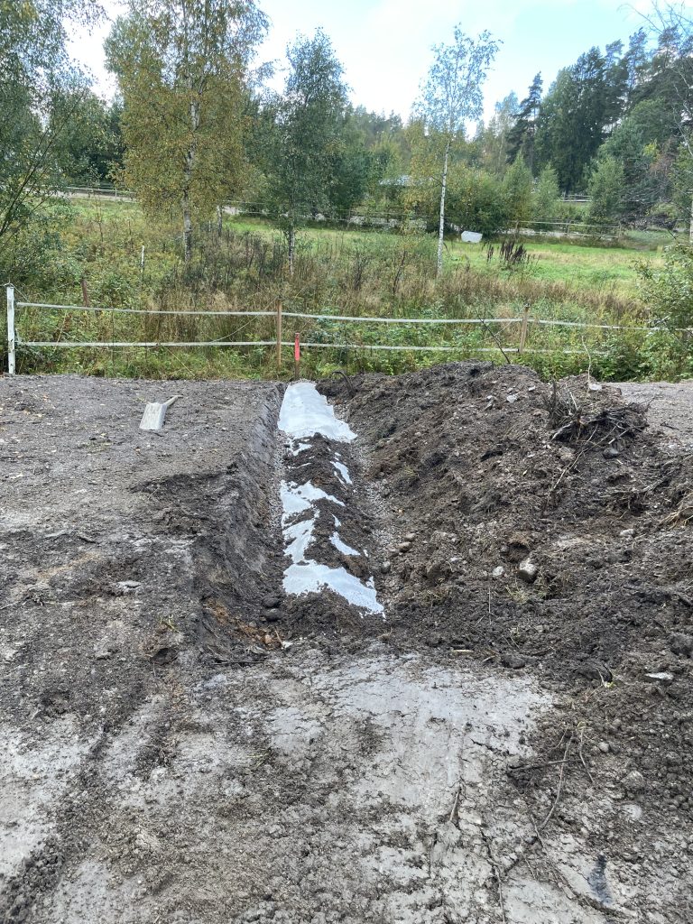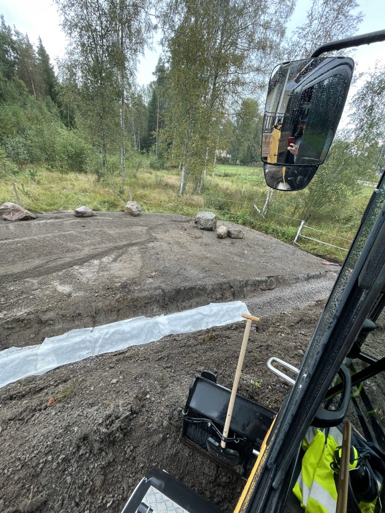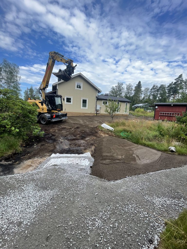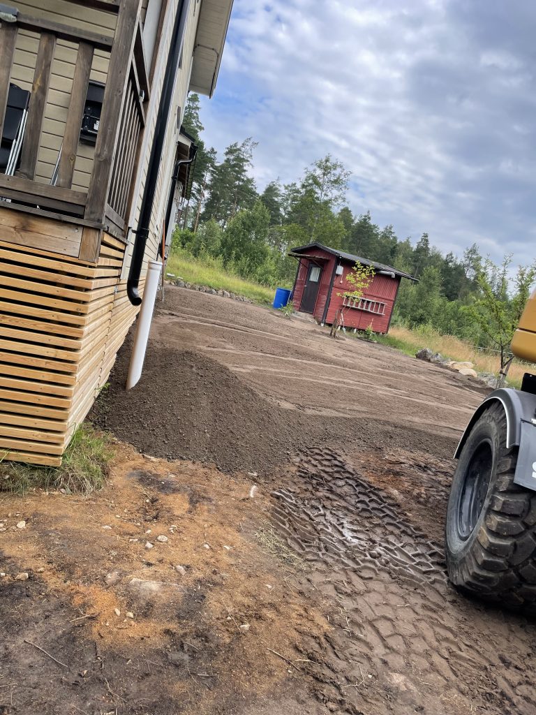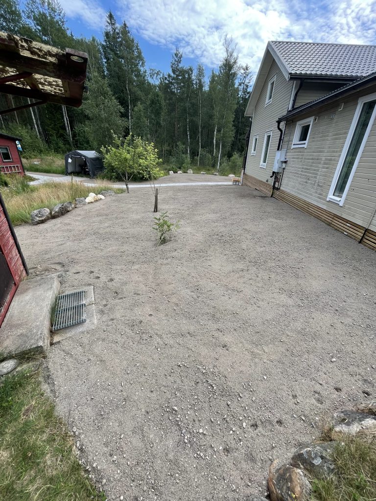 Hos denna kund har vi grovt planerat ut tomten och lagt ut växtjordgräs. Som vi där efter packat och sått gräsfrön på. Vi hjälpte även till att lägga en dränering som ska hjälpa till att ta bort en del vatten.